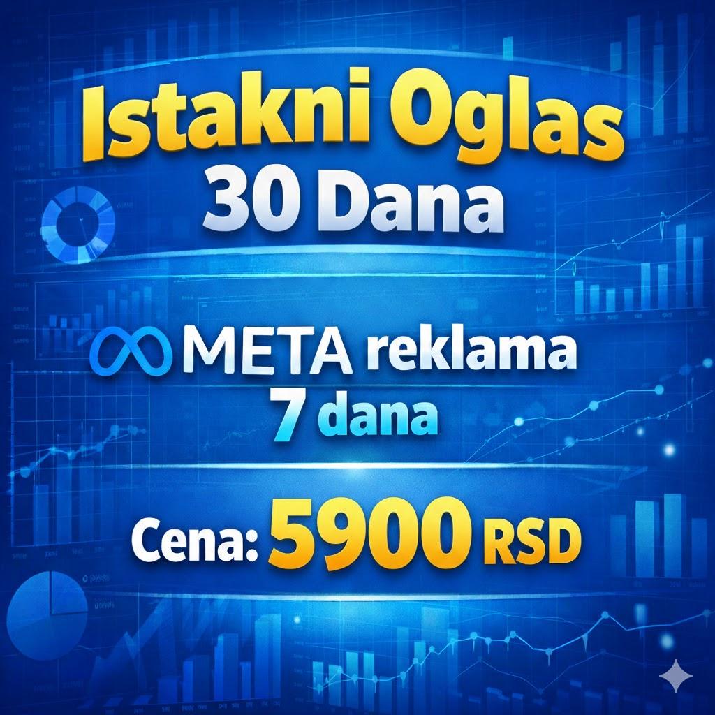 Istakni svoj oglas na 30 dana i dodatno ga promoviši uz 7 dana META reklame kako bi došao do još većeg broja potencijalnih kupaca!